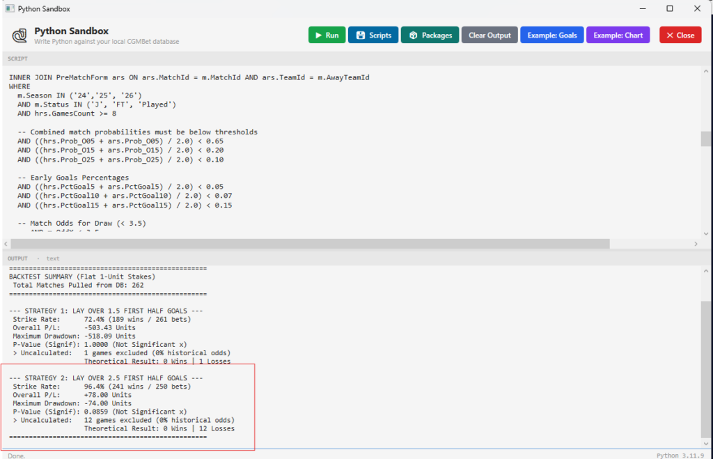 Now we have the SQL and Python sandboxes in CGMBet 26, testing systems like this is a lot easier. We can now create and test really powerful models as well as hold others to account for systems that aren’t quite what they seem.
