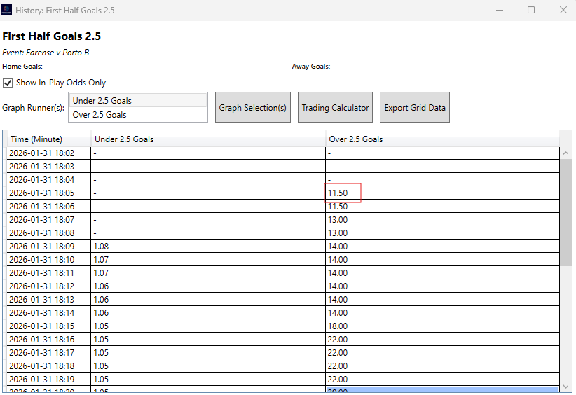 To make this backtest bulletproof, I coded the engine to isolate these edge cases. Instead of ignoring them, it tracks exactly how many of these “0% probability” games actually ended up bursting the goal line, so we can see the true theoretical damage. We can then use our own Market Data Viewer software to obtain the real Betfair odds.